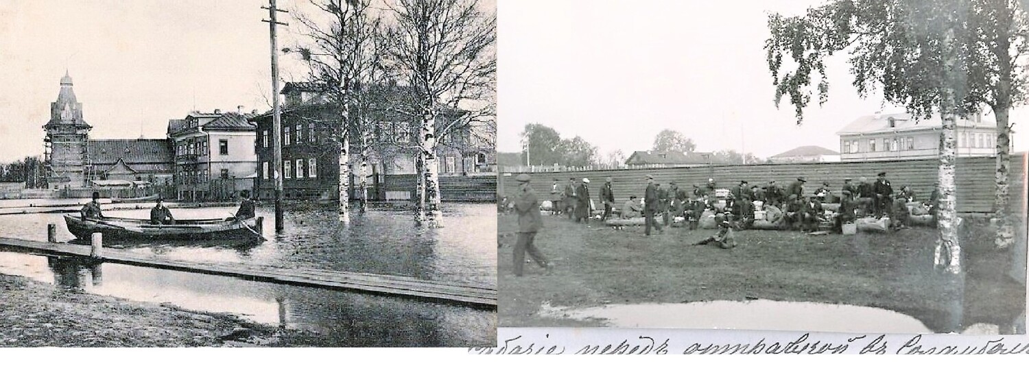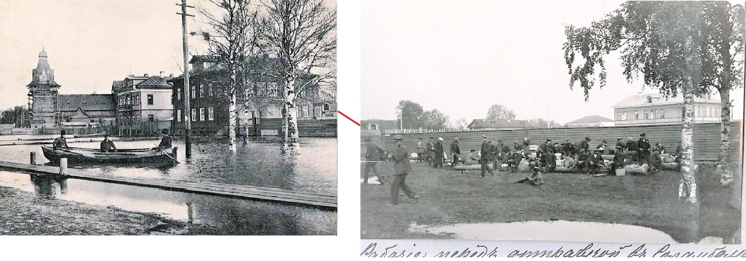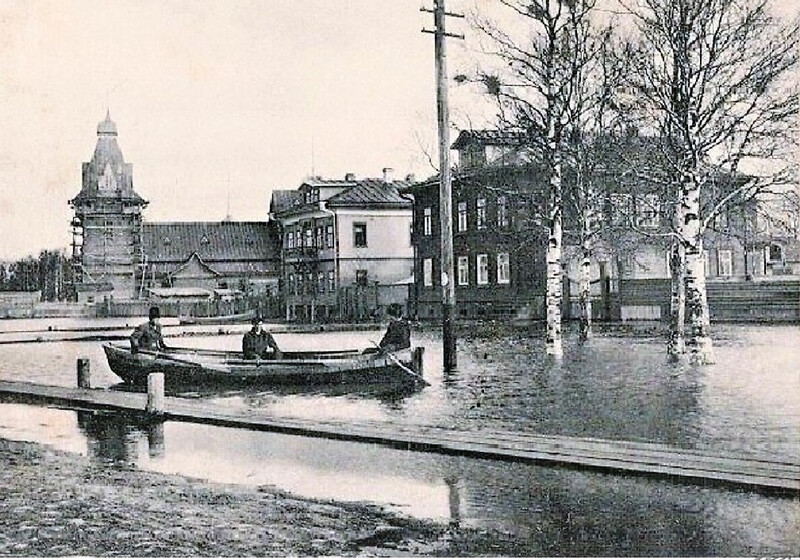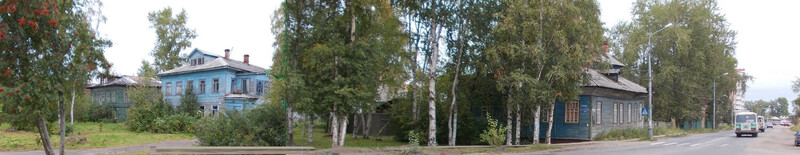 Этот фотоснимок, заимствованный из фотоальбома ВК-паблика Старый Архангельск и датированный 1914-1916 годами, меня весьма озадачил. Так как я никак не мог понять, где именно в Соломбале рабочие под забором ожидали посадки в пароход: А ожидали они возле забора — забора капитального, а не сколоченного на быструю руку — на время строительства. Например, такого, какой смастерили при возведении Народного дома имени Петра Первого: Пришлось просмотреть все доступные фотографии старой Соломбалы, на которых запечатлены капитальные заборы, но, увы... Если логически мыслить, рассуждал я, рабочие должны были ожидать посадки где-нибудь на берегу у какой-либо пристани. Или на Мосееве острове, от причала которого отходили морские суда — со времени существования лесопильного завода Стюарта. Но на этом острове как похожего забора, так и стоявшего за ним двухэтажного дома (именно такого) не было. И судя многочисленным снимкам соломбальской набережной, следует сказать, что подобная пара (капитальный забор плюс двухэтажный дом за ним) опять же нигде на ней не просматривалась. Опять взялся за «подзаборные» фотографии — и ба! — На очередной за забором увидел фрагмент крыши строения (видимо, каретника) со слуховым окном практически такой же, как на снимке с рабочими. К тому же забор — один к одному! Не редактируя снимки, соединил их чисто механически, и получилась в общем-то целостная картина: Если бы не одно «но», причём существенное — на улице Валявкина действительно стоит очень похожий дом (по крайней мере, стоял в марте этого года), но расположен он значительно дальше. И к тому же по красной линии улицы: ![]() Отсюда предположения: либо в начале прошлого века забор частично или полностью перекрывал Соловецкую (Валявкина) улицу под углом, либо чуть ближе к забору и вглуби квартала стоял примерно такой же дом, но сгорел. Или фотосъёмка была сделана в таком ракурсе, что действительность несколько исказилась, что, однако, маловероятно. В случае второго варианта, сгоревший дом мог стоять там, где мной на немецком аэрофотоснимке 1942 года (сайт Signum Temporis) нарисован жёлтый прямоугольник: ![]() В 2012-ом году этот перекрёсток улицы Валявкина и проспекта Никольского (Левачева) выглядел так (мой снимок): А в марте 2025-го совсем по-иному (Яндекс.Карты, фото Михаила Шишова): P.S. Точка в поиске истины ещё не поставлена, и если появятся веские аргументы «за» или «против» этого перекрёстка, то к этой теме ещё вернусь. Пока же скажу, что около него запечатлённые на снимке рабочие вполне могли коротать время под именно этим забором в ожидании парохода, так как пристань была сравнительно недалеко — у соломбальского подворья Соловецкого монастыря... ______________________________________________________Предыдущий пост - Фотоснимок 1952 года |