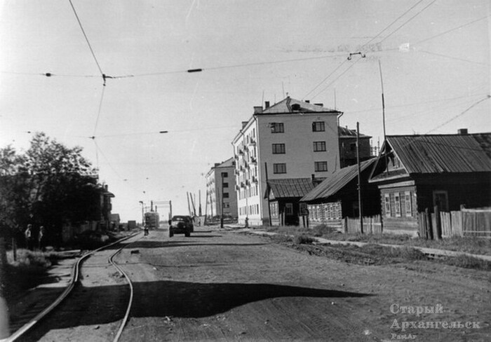Как раз эти хрущёвки и запечатлены на заимствованном с сайта Старый Архангельск фотоснимке улицы Гагарина: