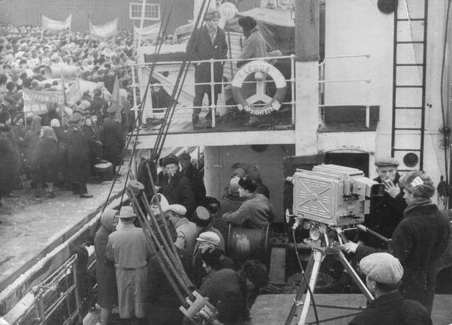 А вспомнил я о прошлогоднем посте по той причине, что сегодня удалось найти фотоснимок, на котором этот почётный эскорт запечатлён идущим по Маймаксанскому руслу Двины (предположительно мимо посёлка 21-го лесозавода) в направлении Экономии: Почему пишу, что в сторону Экономии? — Да так как на палубе спасателя нельзя не заметить толпящихся людей — а это были руководящие лица Северного морского пароходства, представители городских и областных властей, корреспонденты газет, радио, телевидения, операторы киножурнала «Новости дня». И среди них затесался я, четвероклассник... ![]() Вскоре все они перебрались на ледокол, и я остался один на палубе спасателя, название которого найденный сегодня фотоснимок, увы, установить не помог... ______________________________________________________Предыдущий пост - Исправляя ошибку |