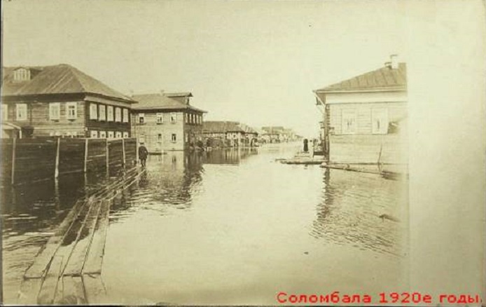 Продолжая фотопутешествие по старой Соломбале, сегодня привожу снимок 1920-х годов, который мне давным-давно прислал земляк-соломбалец Дмитрий Бычихин — опять же для уточнения места съёмки: ![]() Определить, на какой улице Соломбалы стояли два двухэтажных дома, мне удалось, так как весной 2016 года я их как раз сфотографировал — это были угловые дома на пересечении улиц Маяковского и Георгия Иванова: