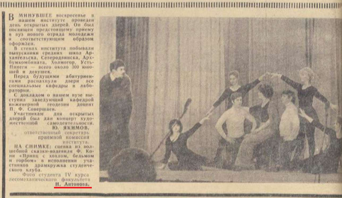 Продолжая знакомить со снимками Николая Антонова, скажу, что он на нашем факультете слыл маститым фотографом. И не только слыл, но и сотрудничал с институтской газетой «Наш темп». Для примера привожу лишь один его фотоснимок, опубликованный в газете в 1975 году: ![]() ... Читать дальше » |