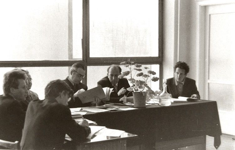 В недавнем сообщении (20.12.2025) Борис Иванович и факультетская статистика речь, в частности, шла о декане нашего факультета Борисе Ивановиче Пугине, который был запечатлён на нескольких приведённых тогда фотографиях. А на днях в фотоальбоме Николая Антонова, учившегося на том же факультете, что и я, но нескольким годами ранее, на одном из его снимков вновь увидел Бориса Ивановича — крайнего справа. А был сфотографирован он, как и другие члены комиссии, в июне 1976 года в тогда ещё новом учебно-лабораторном корпусе АЛТИ в момент, когда перед ними защищал свой дипломный проект очередной выпускник: