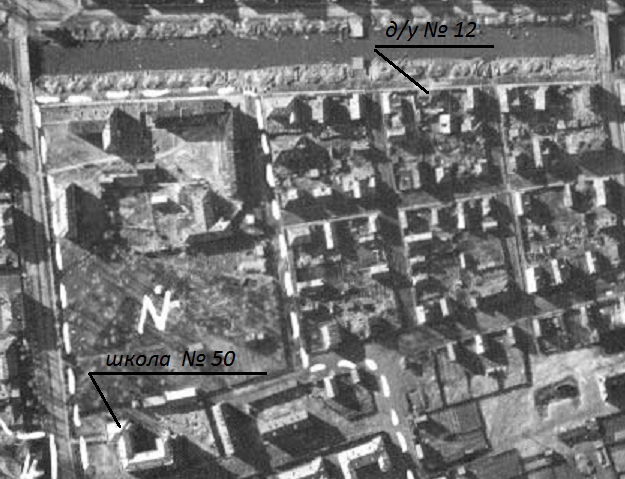 А также и на фрагменте немецкого аэрофотоснимка Архангельска военных лет: