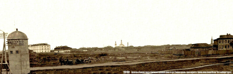 Эту сделанную в 1918 году примерно от кладбища интервентов (и Лютеранского) фотографию я заимствовал из ВК-альбома Дмитрия Бычихина: