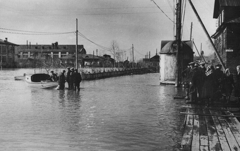 В ВК-фотоальбоме Дмитрия Бычихина встретил снимок, на котором запечатлена общем-то привычная для старой Соломбалы картина очередного наводнения: