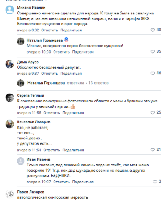 А под постом множество негативных комментариев, и в прежде всего в адрес Вторыгиной. Вот лишь некоторые из них: