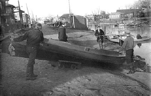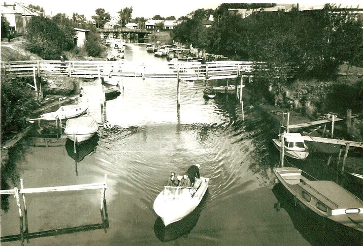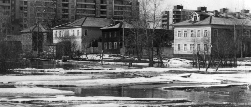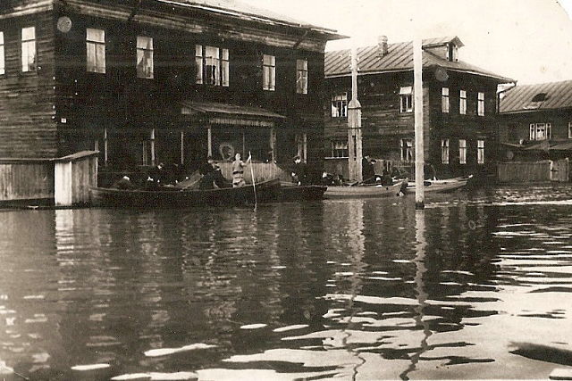 Поскольку в комментариях к недавнему посту Маленький Гортик речь зашла об ещё одном продовольственном магазине, стоявшем на берегу Соломбалки — «Двадцать первом», то сегодня немного о нём расскажу. ![]() Двадцать первым он стал после революции, впоследствии нумерация менялась (например, № 28), но коренные соломбальцы до последних дней его существования продолжали магазин так называть. И посещали его даже в дни наводнений, конечно, не пешком, а на лодках, «швартуясь» непосредственно к крыльцу: ![]() На фото 1960-х годов видно лишь это крыльцо, но зато на берегу Соломбалки можно разглядеть овощной ларёк, к магазину относившийся. А за ним - ещё одно деревянное строение — не знаю, как правильнее сказать, ларёк и киоск «Союзпечати», где я, 6-7-класник, возвращаясь из школы, по четвергам покупал за пять копеек еженедельник «Футбол-Хоккей». И спотыкаясь на мосточках, по пути до улицы Кедрова успевал почти весь прочитать. ![]() На следующих фотоснимках 1988-1989 годов «Двадцать первый» ещё присутствовал: А на этом фото коллектив «Двадцать первого» середины 1930-х годов. В центре — директор магазина, а рядом с ним — мой дед Василий Павлович (зам. директора): В вышеупомянутом посте я писал, что недалеко от «Маленького Гортика» (да и от «Двадцать первого») в 1973-1974 годах вместо деревянного моста был построен железобетонный и что на период замены по оси улицы Розмыслова был возведён временный пешеходный мостик. Он в 1974 году был запечатлён на следующем фото, сделанном со строившегося железобетонного: _____________________________________________________Предыдущий пост - Была задумка... |