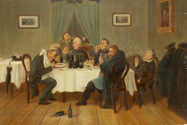 Шутовство это, наконец, надоедает присутствующим и некоторые обращаются к сторожу с претензией на беспорядок и кощунственное в отношении к религии поведение господина Г-на. Но тут просыпается господин П-нъ: