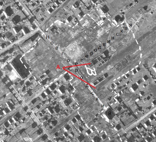 Этот снимок был сделан примерно из точки А, которая мной помечена на фрагменте другого аэрофотоснимка: ![]() Сравнение с первым аэрофотоснимком позволяет сделать вывод, что при бомбардировках были разрушены и сгорели не только корпуса канатной фабрики, но и много жилых домов, стоявших по Новгородскому проспекту и в глуби прилегающих к нему кварталов. Что же касается места, где стояла фабрика, то там в 1970-х годах были построены корпуса типографии и здание, в котором размещалась редакция газеты «Правда Севера»: ______________________________________________________Предыдущий пост - О праздниках и пятидневке |