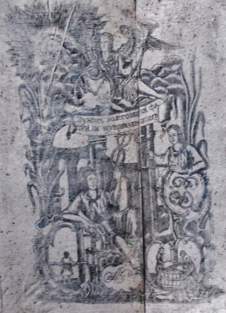 Следовательно, найденные гравюры можно датировать 1750-1790 годами. А история их появления в северной деревне, видимо, такова. В то время бумага с бумажных фабрик поступала в продажу стопами, так она и продавалась. А поверх стопы клался лист — гравюра, служивший одновременно и торговой маркой фабрики, и своеобразной рекламой. Когда же купленная стопа бумаги привозилась, например, в волостное правление или в тот же Афанасьевский сельский приказ, этот верхний лист писчей бумаги, конечно, по прямому назначению использовать уже было нельзя. Только в качестве картинки, которую можно было повесить на стену или приклеить изнутри к крышке сундука.