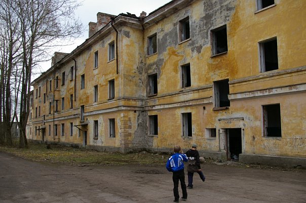 В недавнем сообщении На перроне вокзала речь шла о том, как выпускники АЛТИ 1970-х годов отправлялись на военные сборы. А в другом — Военная кафедра АЛТИ и полковник Дыса — я четыре дня назад вспомнил об одном из преподавателей кафедры и пообещал, что, возможно, вскоре расскажу о том, как проходили эти сборы, в отличие от более ранних выпусков для нас оказавшие вдвое длиннее —трёхмесячными. Итак, 22-го июля 1979 года месяца мы, выпускники АЛТИ, почти сразу же после защиты дипломных проектов отправились из Архангельска ленинградским поездом в посёлок Котлы одноимённой области. Поезд тогда приходил в Ленинград в 10 часов утра на Московский вокзал, откуда мы, несколько сотен человек, одетые в пошитую для занятий на военной кафедре форму, на метро проследовали до другого вокзала (если не ошибаюсь, Варшавского). А там, заняв несколько вагонов электрички, поехали в сторону места проведения сборов. Пишу «в сторону», так как нам пришлось ещё раз пересаживаться — на этот раз с электрички на местный пригородный поезд. Поездка на электричке запомнилась тем, что нам запретили пускать в занятые вагоны гражданских пассажиров, и они на коротких по времени остановках метались от вагона к вагону, пока не добегали до свободного и им доступного. Заметив их метания, машинист по вагонному радио объявил: «Товарищи военные, прекратите издеваться над пассажирами!», но стоявшие в дверях дежурные были непреклонны — приказ есть приказ.... Наверное, часа в четыре или пять мы приехали на станцию Котлы, и оттуда недружным строем двинулись к месту расположения военной части 28088 (ордена Красного Знамени 33-го Двинского инженерно-сапёрного полка). И вскоре прошли вот через этот КПП: ![]() Справа на фотоснимке — здание солдатских казарм, а за ним находился плац. Был дан приказ там расположиться, и мы вследствие какой-то неразберихи просидели на нём несколько часов. Видимо, только в девятом часу вечера нам выдали солдатскую форму и повели в баню. Затем состоялось «обкуривание» — заводили по очереди в палатку с распыленным газом, где удостоверялись, что выданный противогаз подходит по размеру: если глаза не слезятся, то как раз. В палатках мы оказались только ночью, благо свою нашли быстро — июньские ночи там белые. Настолько, что можно было прочитать фамилии на картонках, лежавших на приготовленных постелях (матрац, простынь, подушка и тонкое одеяло). Палатки были в плане квадратными и десятиместными, причём восьмерым предстояло спать на одном помосте, а двоим - отдельно на другом. Этим двоим, конечно, было просторней, нам же поначалу показалось, что тесно. Но в сентябре, в холодные и сырые ночи, мы этой тесноте были только рады... Утром нас разбудили единственный раз в виде исключения не в шесть часов, а в восемь: «Третья рота подъём!» И тут выяснилось, что в палаточном городке мы, алтишники, не одни — в соседних палатках уже обосновались выпускники ЛИСИ (Ленинградского инженерно-строительного института), имевшие такую же военную специальность. Всего нас было три роты: первая — ЛИСИ, вторая и третья — АЛТИ. За подъёмом последовало построение — первое по-настоящему армейское. Затем — опять же первая двухкилометровая пробежка в кирзовых сапогах и завтрак в солдатской столовой. Вот как она, заброшенная, выглядела в 2017 году: ![]() Однако в ней мы столовались лишь несколько дней (начал