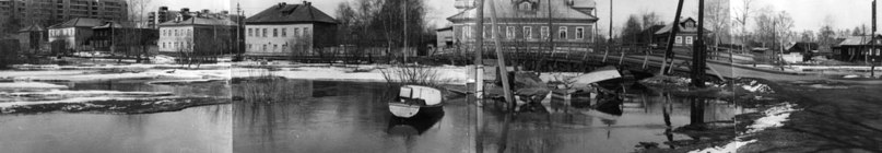 В поисках очень интересующих меня фотографий старой Соломбалы я вчера просматривал снимки группы Моё Отечество Россия - Русский Север - Поморье, и небезуспешно. Так как среди множества фотографий нашёл то, что давно искал - облик двухэтажного дома по улице Краснофлотской, в котором располагался "двадцать первый" магазин (о нём я уже рассказывал). Вот этот снимок: Этот третий дом слева - после одноэтажного и двухэтажного. Он же на панорамном снимке, "склеенном", видимо, Сергеем Некрасовым - он ознакомил группу с этими снимками. Это же здание, обведённое кругом, на фрагменте немецкого аэрофотоснимка Соломбалы: Эта удачная находка вселяет надежду, что со временем встретятся снимки стоявшего на площади Терёхина здания, которое соломбальцы звали "Галдареей" и дома, в котором прошло моё детство, улица Валявкина, 39. Почему-то так сложилось, что снимков упомянутой площади - как дореволюционных, так и советского периода - очень много. Однако по непонятной причине никто не фотографировал её в сторону рынка. И поэтому "Галдарея" в объективы не попала. Правда, в моём домашнем архиве имеются две фотографии, на которых это здание запечатлено частично. С этими снимками я уже знакомил. Поэтому только повторяю фрагмент аэрофотоснимка площади Терёхина, на котором "Галдарея" обозначена цифрой 6, а цифрой 7 - торговые ряды Соломбальского рынка: Что же касается дома по улице Валявкина, 39, то у меня имеется только такая его фотография примерно 1963-1964 годов: На ней на фоне дома запечатлена моя бабушка Мария Леонтьевна с её хорошим знакомым - жителем Первой Соломбальской деревни. Буду надеятся, что снимки как моего родного дома, так и "Галдареи" ещё хранятся у кого-то в альбомах и со временем мы их увидим. Если же нет, то придётся на память их нарисовать. Но пока подожду, вдруг всё же найдутся... |