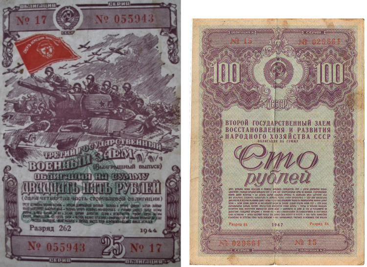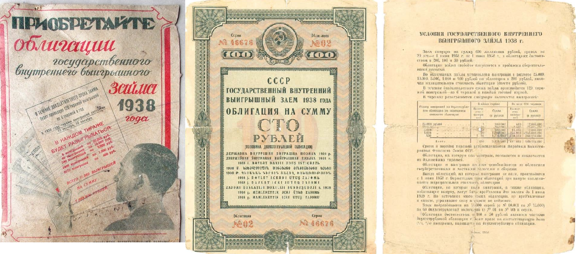 К процитированному добавлю, что облигации внутреннего займа распространялись с 1930-х годов — ежегодно на период в 20 лет, по прошествии которых невыигравшие выкупались по нарицательной стоимости.