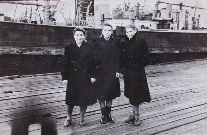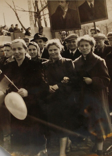 Сегодня на сайте pastvu встретил фотографию, определить место и дату съёмки которой редактор этого интернет-ресурса затруднился и поэтому написал: «Где это?» ![]() Ответить на этот вопрос мне особого труда не составило: место съёмки — Соломбала, начало улицы Краснофлотской, недалеко от проходной 176-го военного судоремонтного завода и КПП воинской части 25025, которая располагалась в здании бывшего флотского полуэкипажа, на тот момент ещё не надстроенного и поэтому выглядевшего также, как и на дореволюционном снимке: ![]() Что касается даты съёмки, то это либо 1 мая 1953-го, либо 1 мая 1954-го года. Скорее, 1953-го, так как за портретом И.В. Сталина — портрет Г.М. Маленкова, который после смерти вождя занял главный в ту пору пост в стране — должность Председателя Совета Министров СССР. А боровшийся с ним за лидерство Никита Хрущёв был избран первым секретарём ЦК КПСС только в сентябре 1953-го. Именно поэтому его изображения в руках демонстрантов нет. А портрет В.И. Ленина в соответствии с существовавшим тогда порядком несли первым, и он на снимок не попал. Как видите, на снимке частично — гражданские лица, частично — военные. На вопрос, кто они, ответ тоже есть: это офицеры, сверхсрочники (мичманы) и вольнонаёмные располагавшихся в Соломбале военно-морских частей. А помимо в/ч 25025 их было несколько: небольшая часть по снабжению продовольствием стоявших на ремонте в 176-ом заводе судов — за Соломбальским рынком, на берегу; затем, называвшаяся «Тылом» (двухэтажное здание, стоявшее рядом с райисполкомом); а в конце Соломбалы — часть, по привычке именовавшаяся ЭПРОНом. Там тоже были продовольственные склады, базировались водолазные катера и располагались военные гидрографы. ![]() Естественно, что в их штате наряду с военнослужащими были и вольнонаёмные — исключительно женщины, работавшие в основном бухгалтерами, машинистками и кладовщиками. Именно они и запечатлены в общей колонне морских частей, которая перед началом демонстраций на площади Терёхина формировалась возле здания флотского полуэкипажа. Кстати, имя и фамилию одной из тогда сфотографированных демонстранток могу назвать — Нина Коптякова (в белой шали), проживавшая в Первой Соломбальской деревне в доме, стоявшем между 1-ой по 2-ой линиями (улицами Кузнечевской и Суханова). Примерно напротив моста через Соломбалку. Знаю об этом, так как бывал у неё в гостях. К сожалению, отчества не знаю, точнее, не знал — я был в том возрасте, когда называл её просто «тётя Нина». А работала Нина Коптякова в ЭПРОНе, на причале которого во второй половине 1950-х она сфотографировалась с моей тётей — Ниной Васильевной — и ещё одной вольнонаёмной — Екатериной Тункиной: Возвращаясь к первой фотографии, повторю, что запечатлённая на ней колонна демонстрантов после сбора проследовала на площадь Терёхина, где примерно до середины 1960-х отдельно от города проводились первомайские и ноябрьские демонстрации. Об этом я ранее более подробно уже рассказывал. ______________________________________________________Предыдущий пост - «Спрятавшаяся» поликлиника |