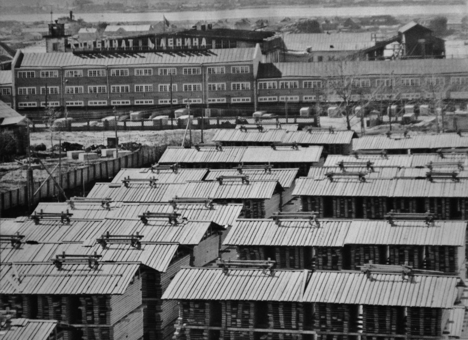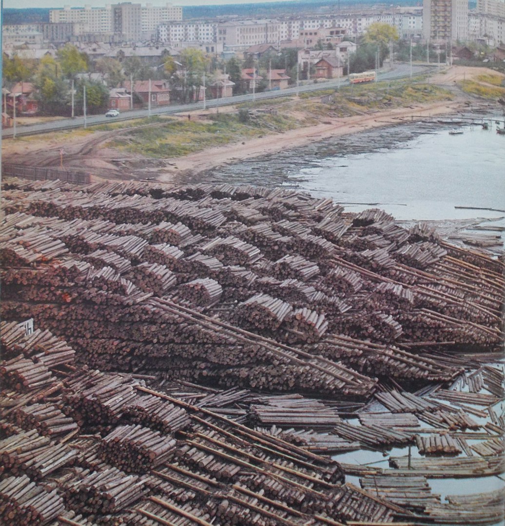 Продолжая рассказ об архангельском лесозаводе № 3 (ЛДК им. Ленина), сегодня привожу два заимствованных с сайта pastvu фотоснимка начала 1970-х годов. Первый из них был сделан в сторону улицы Красной Звезды, на которой достраивалось здание управления «Архстройтранса» (рядом с ним виден кран): А датирую снимок началом 1970-х по той причине, что на территории биржи ЛДК им. Ленина ещё велось строительство ближнего к Ленинградскому проспекту склада (стоят лишь вертикальные балки-опоры), а вдоль проспекта ещё не возведён четырехэтажный административно-бытовой корпус биржи (официально — цеха сушки и обработки)ю С той же точки, но в другом ракурсе запечатлена другая часть биржи, а за ней — жилые дома заводского посёлка: С первого из запечатлённых башенных кранов был сделан (правда, ещё в 1960-х) третий фотоснимок — в сторону Северной Двины: А на следующем снимке (видимо, начала 1970-х) помимо штабелей круглого леса (пиловочника) — Ленинградский проспект и микрорайон Варавино: Эта фотография была сделана с одного из двух гигантских козловых кранов производства ГДР: ![]() С него же фотожурналист Всеволод Тарасевич в 1965 году запечатлел проходивший мимо комбината пассажирский теплоход: ![]() водный и лесопильный цеха: ![]() причал и то, что находилось в 1965 году далее, то есть за остановкой «Такелажная» — на берегу в районе улицы Красной Звезды и нынешнего Майского парка. А именно опять же штабели пиловочника: ![]() Последним снимком почти круговое фотопутешествие по территории Третьего, можно сказать, завершилось. А что осталось от запечатлённого на снимках 1960-1970-х годов, может увидеть каждый проезжающий по Ленинградскому проспекту — увы, кроме складов, ничего... ______________________________________________________Предыдущий пост - Вновь о том же заводе |